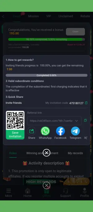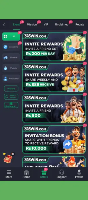 The referral feature is common in apps like 345 win app because it grows users fast. Typically you share a code or link and get a small reward when someone joins. For Pakistani users, this is popular since people already share apps in WhatsApp groups.
